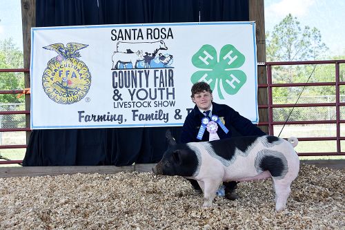 Central High School 11-grader Keaton Henry won first place for showmanship, first place in the market show, and second place for grand reserve champion alongside his pig, Sweetie.