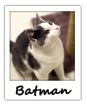 Hi everyone! My name is Batman. I'm a 6 month old beautiful male cat with a big personality! I love to play, cuddle and purr. If you would like to be my forever home, come visit me at the shelter!