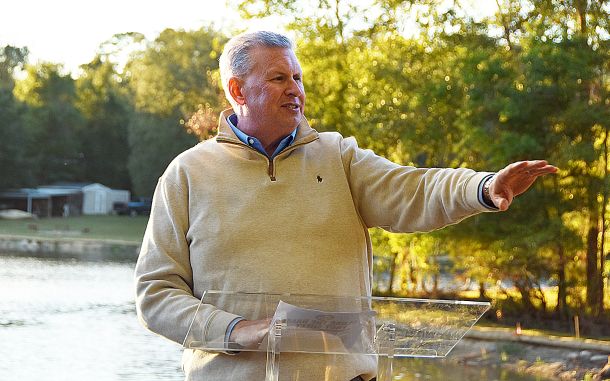 Milton City Manager Ed Spears announced Oct. 29 that Locklin Lake’s dredging and shoreline restoration was complete, as he and residents stood on fresh sod as the sun set on the horizon, casting a glow over the lake.