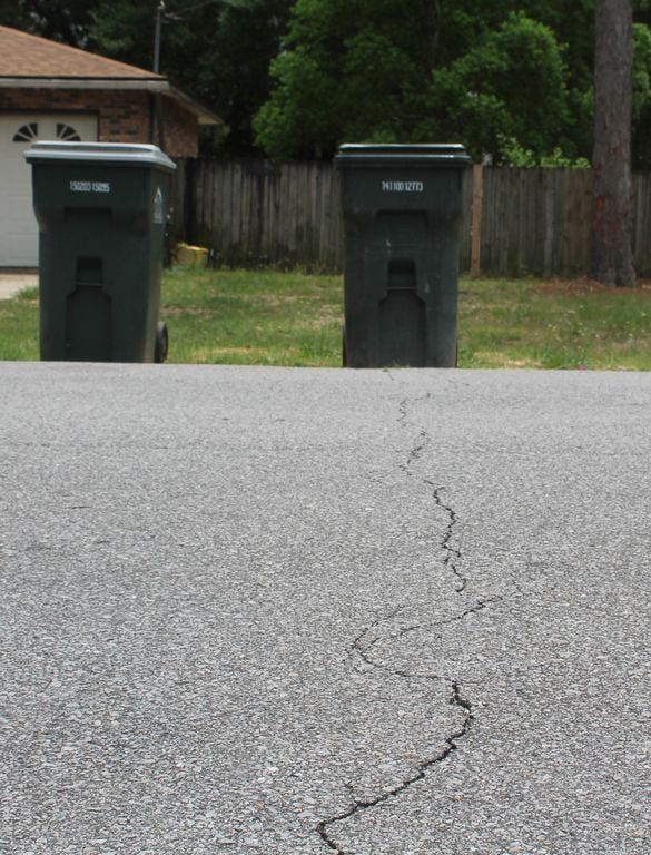PACE — A 3-mile segment of Berryhill Road, resurfaced in February, has failed in several areas.