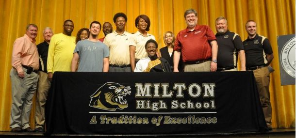 MILTON — Sports scholarship signings in Milton High School’s auditorium are common place, but this week, the band had its turn.