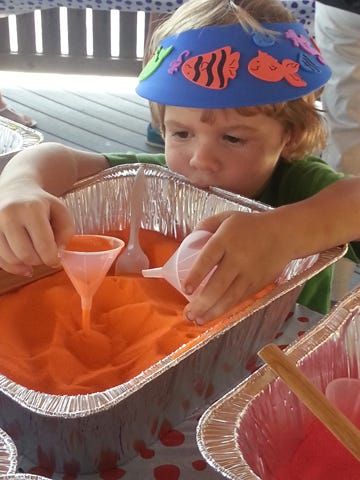 Children were active inside the gazebo on Riverwalk in downtown Milton today during the Riverfest Independence Day celebration, practicing their artistic talents in sand art.