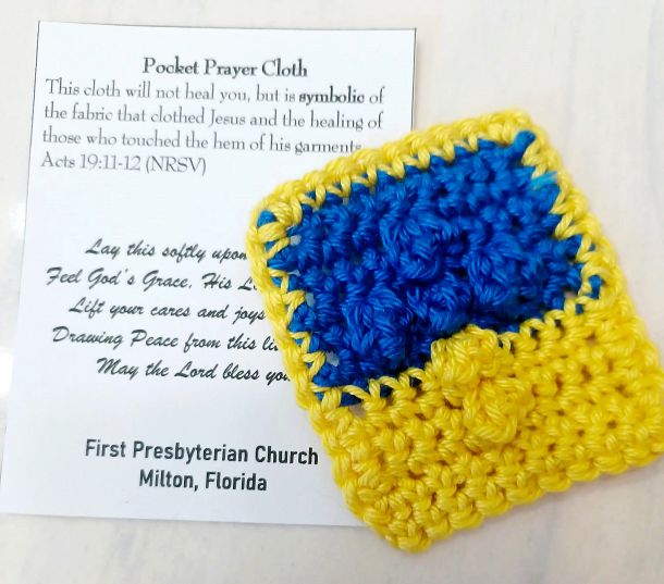 Once a month, members of First Presbyterian Church of Milton gather in the Drowsy Poet coffee shop on Woodbine Road in Pace to knit, crochet, and have fellowship.