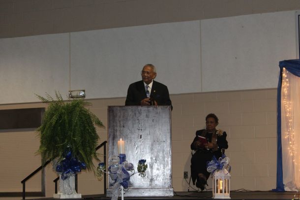 MILTON — Fellowship Churches of Santa Rosa County Chairman addresses the 25th annivesrary banquet attendees. The banquet's theme is "There is strength in unity."