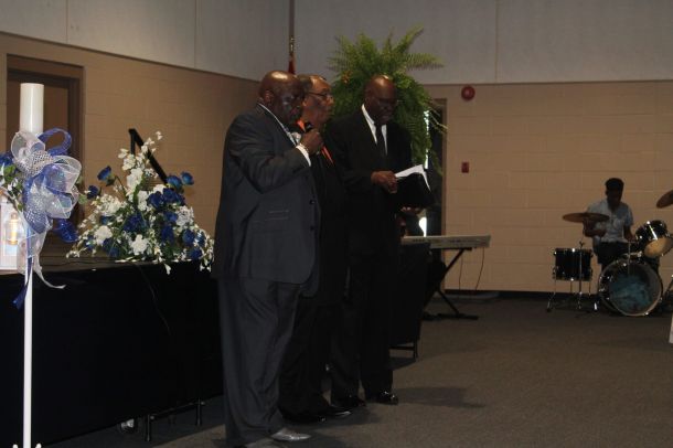 MILTON — Deacons C.T. Johnson, Bobby Green and John Williams give the opening devotion address before the Feb. 17 Fellowship Churches of Santa Rosa County, Inc. 25th anniversary banquet.