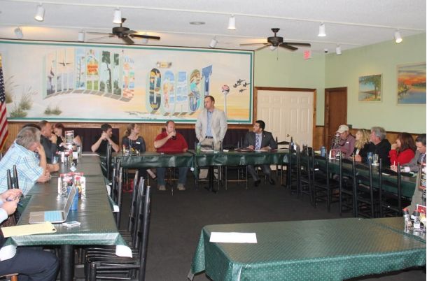 MILTON — Milton Mayor Wesley Meiss spoke at a Florida Restaurant and Lodging Association meeting Wednesday at Grover T’s BBQ to let the hospitality industry know that “Milton is open for business.”