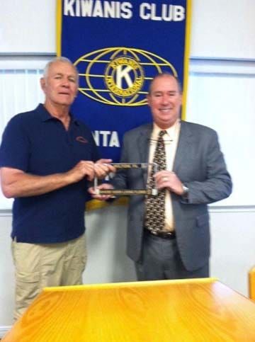 Superintendant Dan Brown of the Gulf Islands National Seashore is shown receiving the Milton Pride tag holder from President Elect John Stone of the Santa Rosa Sunrise Kiwanis club. The knowledgeabl…