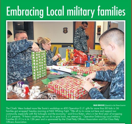 Only a handful of tickets were still hanging on the Operation E.L.F. tree when Jacky Casci stopped by the NAS Whiting Field Fleet and Family Support Center (FFSC) the day after the tree’s annual debu…