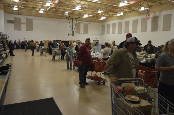Preregistered families waited at the center to receive canned food …