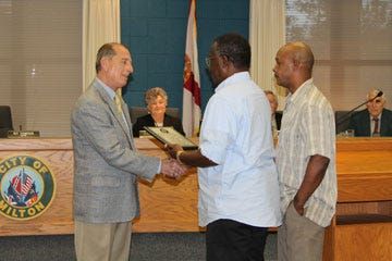 John Adams received a plaque and recognition from Mayor Guy Thompson March 11 at the Milton City Council meeting on behalf of his wife, Martha Adams. Thompson said Martha Adams was the first female, …