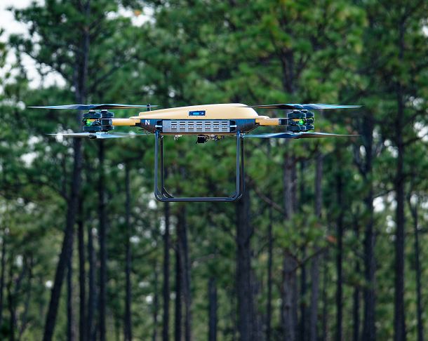 Eglin Air Force Base – With the low rumble of Air Force fighter engines echoing in the distance, four and then eight motorized propellers of two unmanned aerial systems (UAS) buzzed to life in an open field of the Eglin Test and Training Range Oct. 8.