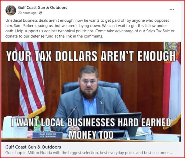 Gun shop owner Chris Smith has hired attorney Anthony Sabatini, a former state representative and 2024 Congressional candidate, to represent him in a lawsuit filed against Smith and his business, Gulf Coast Gun and Outdoors, by Santa Rosa County Commissioner Sam Parker.