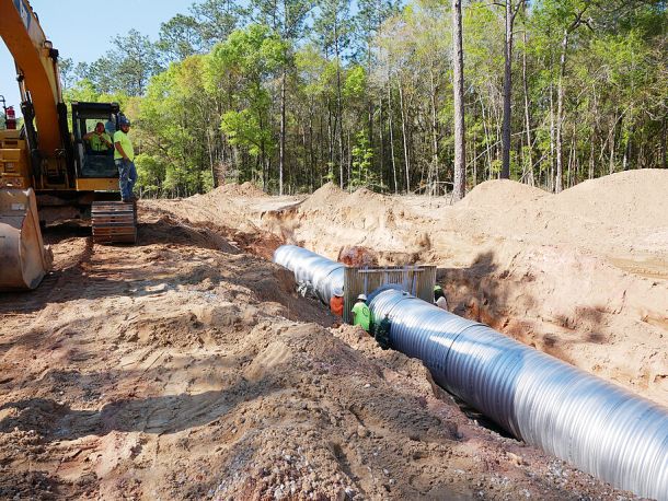A major storm event in April 2014 resulted in 24 inches of rain in an eight-hour time frame, causing widespread flooding and many erosion problems on private lands in Santa Rosa County. A major problem that occurred during this storm was the formation of a large gully on the property owned by Jimmy Andajaur and Kari Brock in north-central Santa Rosa County. Overnight, a gully approximately 30 feet deep, 50 feet wide, and over a quarter mile long formed.