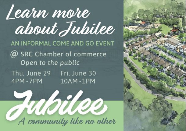 Anyone interested in learning more about the 2,700-acre master-planned Jubilee community proposed northeast of Pace is invited to an “informal, come-and-go” event between 4-7 p.m. Thursday, June 29, and 10 a.m.-1 p.m. Friday, June 30, at the Santa Rosa County Chamber of Commerce, 4315 Avalon Boulevard in Milton.