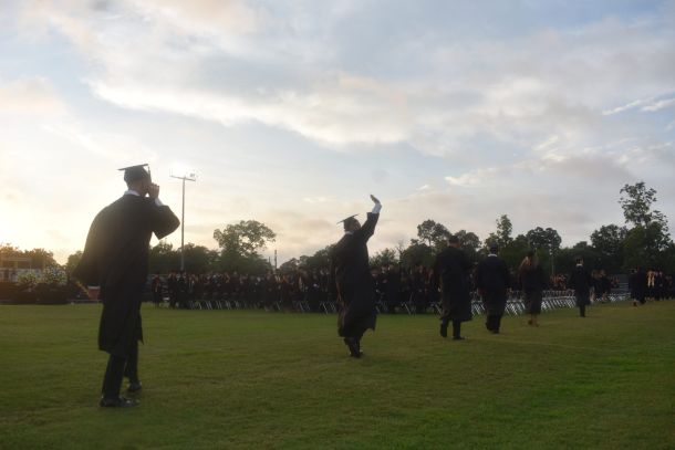 A rainy day gave way to clear skies in time for 435 Milton High School seniors to walk across the stage and accept a diploma Tuesday at Haywood Hanna Panther Stadium.