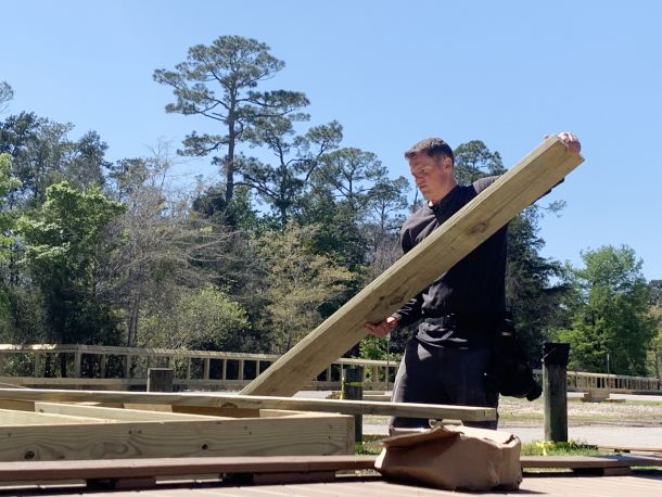 “Hey! You can’t be on there,” he yelled to the trespassers. The area had been taped off and blockaded so vehicles wouldn’t drive into the work area, but any curious resident could easily stroll over to where the framework for the boardwalk meanders along a tributary to the Blackwater River.