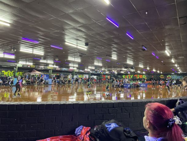 Torrie Weber and Alicia McBride zoom around the rink at Weber’s Skate World in Milton on the Friday afternoon ahead of the Emerald Coast Inline Challenge. Weber and McBride are teammates on the What’s Up Dock Racing inline skating team and have been close for nearly a decade thanks to a friendship that has been forged through the sport.