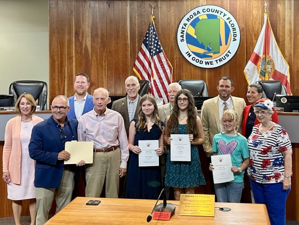The Santa Rosa County Republican Club’s awarded their annual Constitution Essay Contest winners: Lucas Cannon 9th grade – $1,000 (not present), Sydney F. Maygarden 8th grade – $500, Lauren Kalb 8th grade – $350 and Olivia Kaiser 8th grade – $200.
