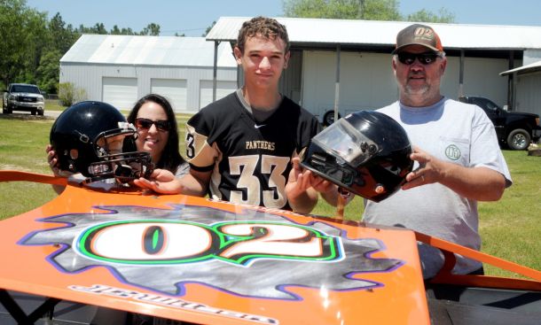 Wilson, 15, has been wearing a football helmet during spring practice at M…
