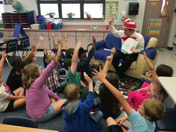Educators read Dr. Seuss books to students