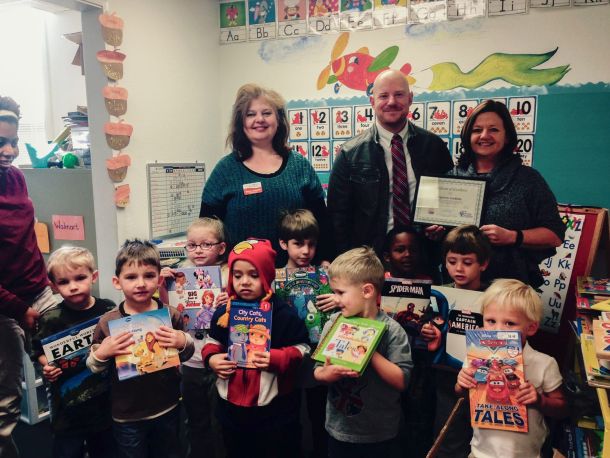 Students from the Capstone Academy Milton proudly display a portion of their newly awarded books for winning the county-wide literacy challenge, sponsored by the Early Learning Coalition of Santa Ros…