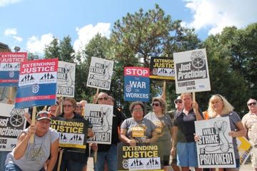 Members of Teamsters Local 991 held a practice protest Thursday morning at the Santa Rosa County School District’s Professional Development Center. The chapter’s business agent, Lavon Lindsey, said “…