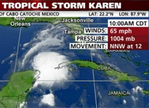 National Hurricane Center Issues Tropical Storm Karen Public Advisory
