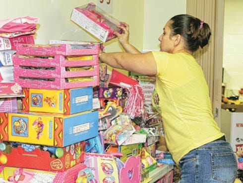 On Monday morning, Linsey Rosen, a United Way volunteer, shuffled through stacks of Barbie dolls, stuffed animals and board games looking for a Monster High Doll — one of the items on a local child’s…