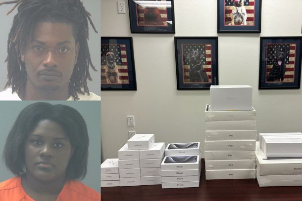 Two individuals were arrested and dozens of fraudulent Apple devices were recovered, according to information from the Santa Rosa County Sheriff’s Office.