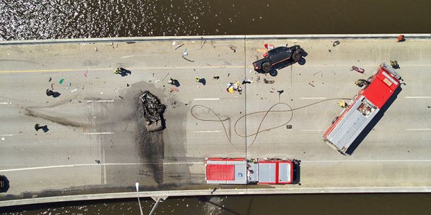 A fiery crash resulted in one death and several injuries on Interstate 10 Thursday afternoon on the Escambia Bay Bridge.