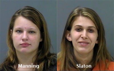 Shelly Slaton, 19, and Brooke Manning, 18, were arrested and charged with five counts o…