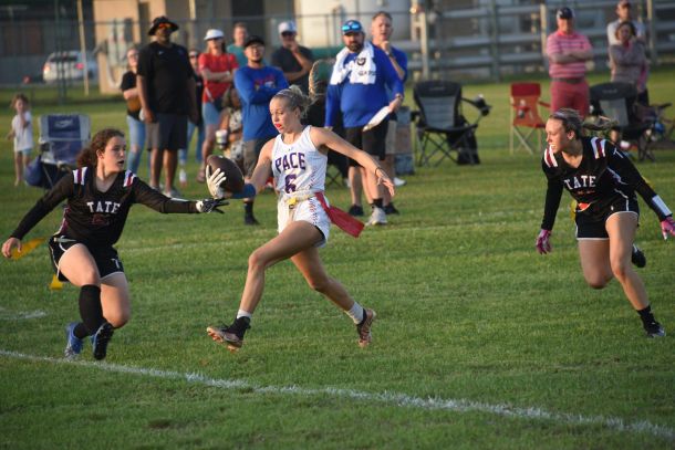 Amaya Pablo had already thrown a touchdown pass for Pace’s first points of the night against Tate, hitting Katie Crounse in the corner of the end zone.
