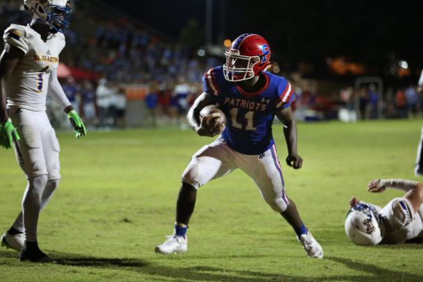 The visitors from Ocean Springs, Mississippi, kept the Patriots’ defense off balance on their opening possession. The Yellow Jackets marched 80 yards on 10 plays to take 6-0 lead with 6:29 left in the opening quarter.