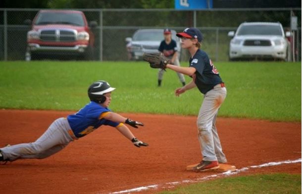 Para Braves 9-10 year olds shut down Milton White scoring 12 – 2 Tuesday. Cooper Foust is safe at home plate.