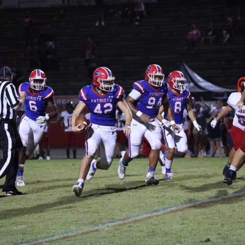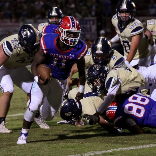 The visitors from Ocean Springs, Mississippi, kept the Patriots’ defense off balance on their opening possession. The Yellow Jackets marched 80 yards on 10 plays to take 6-0 lead with 6:29 left in the opening quarter.