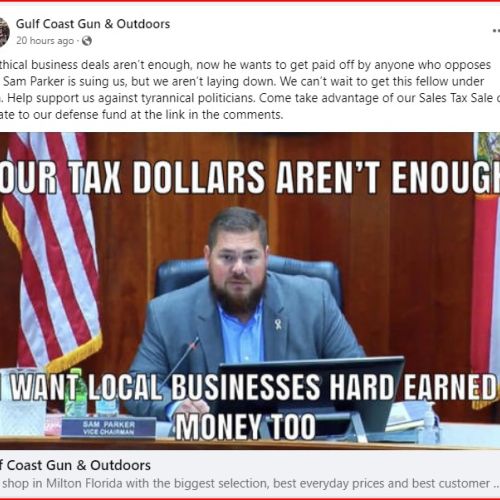 Gun shop owner Chris Smith has hired attorney Anthony Sabatini, a former state representative and 2024 Congressional candidate, to represent him in a lawsuit filed against Smith and his business, Gulf Coast Gun and Outdoors, by Santa Rosa County Commissioner Sam Parker.