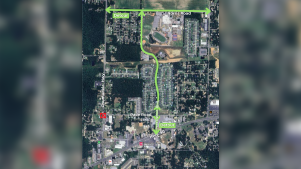 - Traffic moving south along Chumuckla Highway will be detoured to Norris Road and Pace Patriot Boulevard.