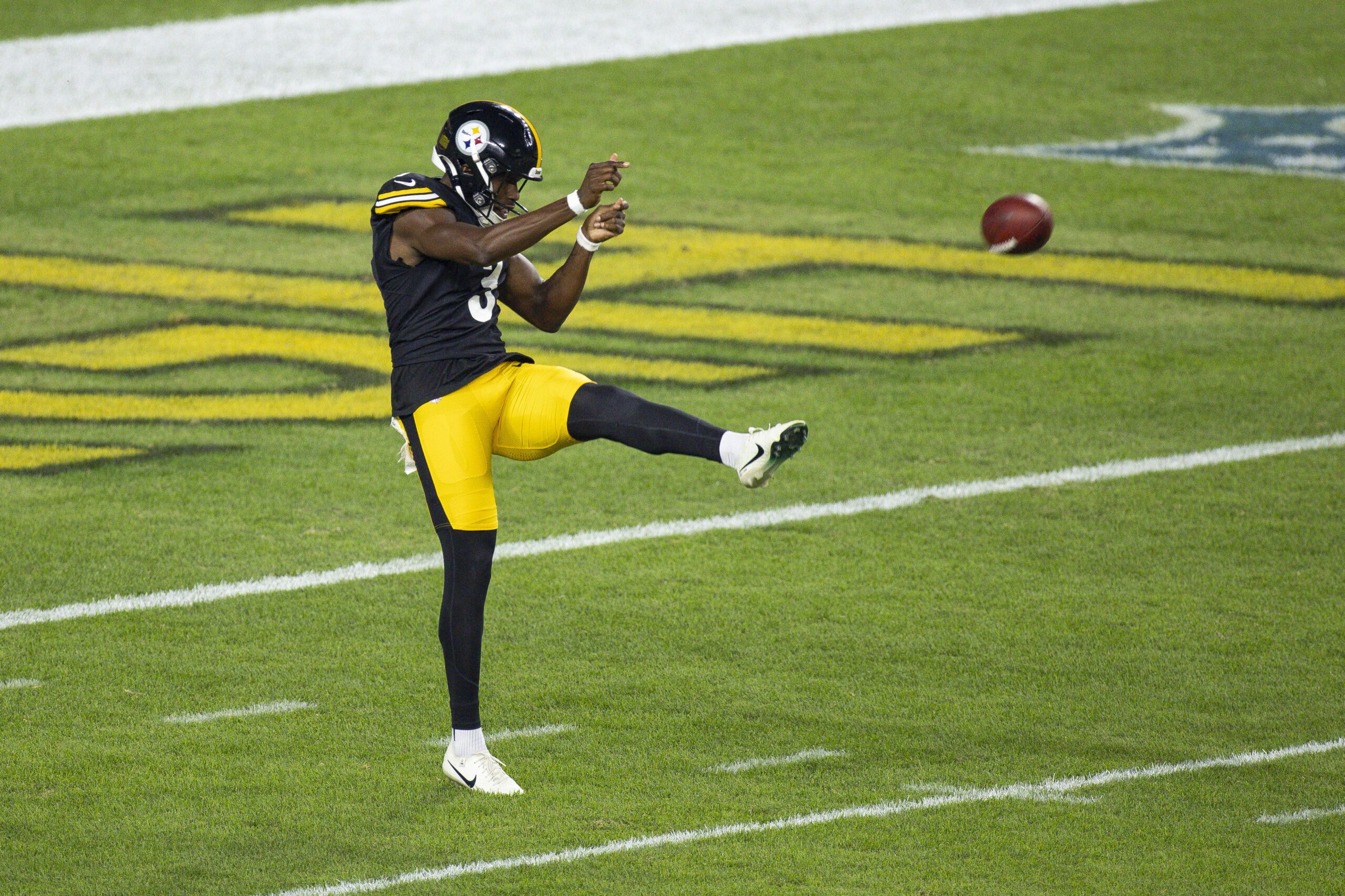 Pittsburgh Steelers punter Corliss Waitman (3) during a preseason game between the Pittsburgh Steelers and the Tampa Bay Buccaneers, Saturday, Aug. 16, 2025 in Pittsburgh, PA. The Buccaneers beat the Steelers 17-14. (Harrison Barden / Pittsburgh Steelers)
