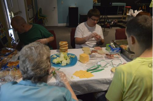 Many church members packed bags of food such as sandwiches …