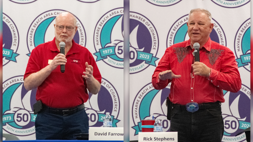 David Farrow and Rick Stephens were asked a fair question during Wednesday night’s election forum, organized by the Navarre chamber of Commerce at East Bay K-8 School — Why is either going through the process of running for an elected position that they won’t be paid for, and basically holds no power?