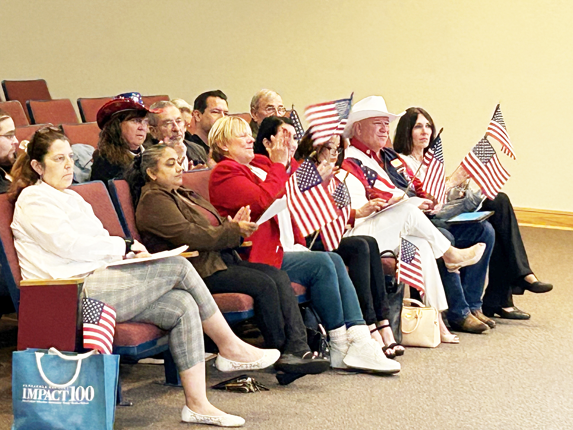 Residents who support Santa Rosa County spending about $300,000 to install the state’s tallest American flag dressed in patriotic colors and waved flags at Thursday’s meeting of the Board of County Commissioners.