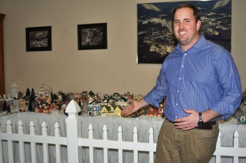 Mayor Wesley Meiss introduces “Holtville” village inside city hall. The village is on lend from the family of the late Danny Holt honoring his memory. The collection of Department 56 Snow Village dep…