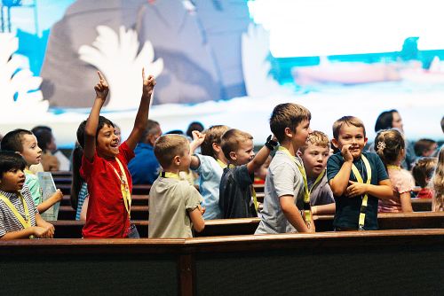 Children celebrate at Immanuel Baptist Church’s “Breaker Rock Beach” VBS program.