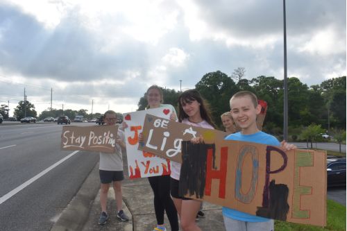 Members of Pine Terrace Baptist Church gathered along U.S. Highway 90 near its intersection with Avalon Boulevard to spread ‘messages of love’ as part of the One Love Florida’s Holy Week activities.