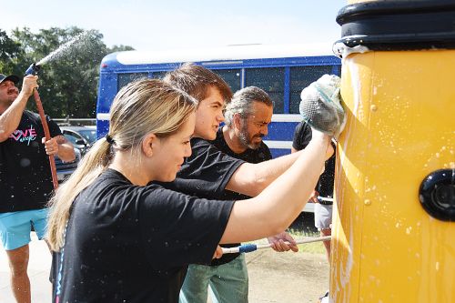 Members of Momentum Church in Navarre came together to wash buses for Student Transportation of America, which oversees the busing for children in Santa Rosa District Schools. The bus washing was part of the church’s Love Week outreach.