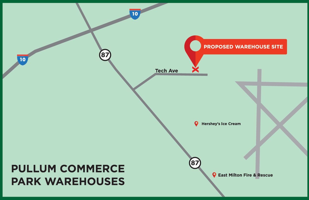 Pullum Commerce Park in East Milton is set to get three new warehouses as part of a planned development. The site, currently vacant, is on the north side of Technology Avenue.