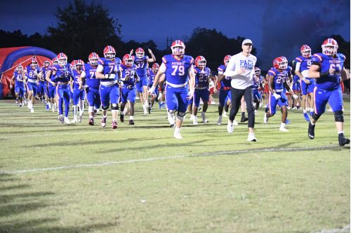 The Pace Patriots take the field before a game earlier this season. Pace won its eighth in a row on Friday night. (File Photo)