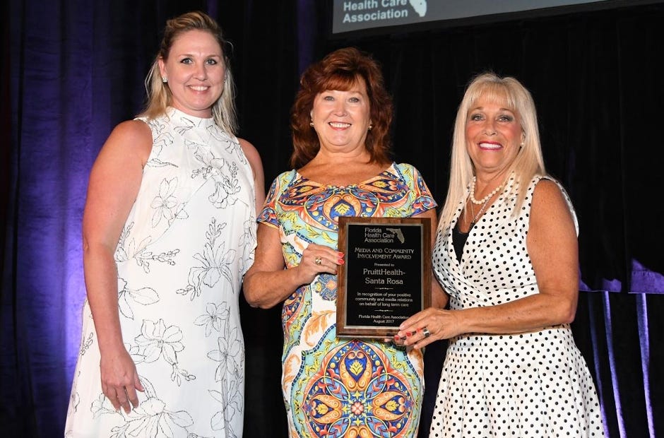 MILTON — PruittHealth-Santa Rosa in Milton received the statewide 2017 Media and Community Involvement award from the Florida Health Care Association. FHCA presented the award during its annual confe…