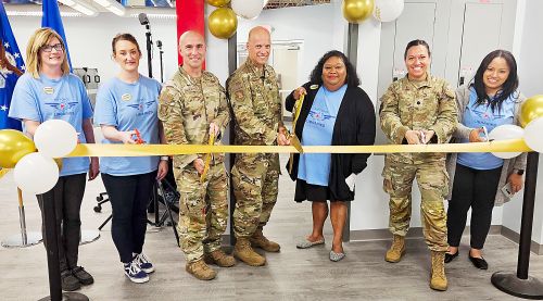 Eglin Community Library staff and 96th Test Wing leadership cut the ribbon to re-open the library Aug. 27 at Eglin Air Force Base, Fla.