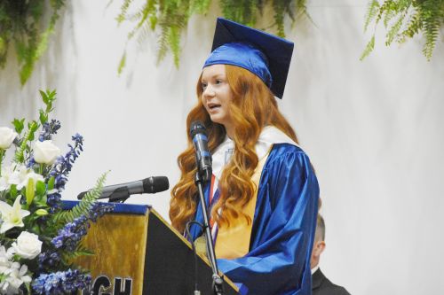 Valedictorian Hannah Kersey speaks at the Jay High School commencement.